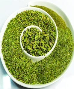 Oregano seco en hojas, presentado en sacos de papel Kraft con interior de polietileno. Disponible en presentaciones de 10 kg y 12.50 kg, este producto garantiza frescura y calidad.